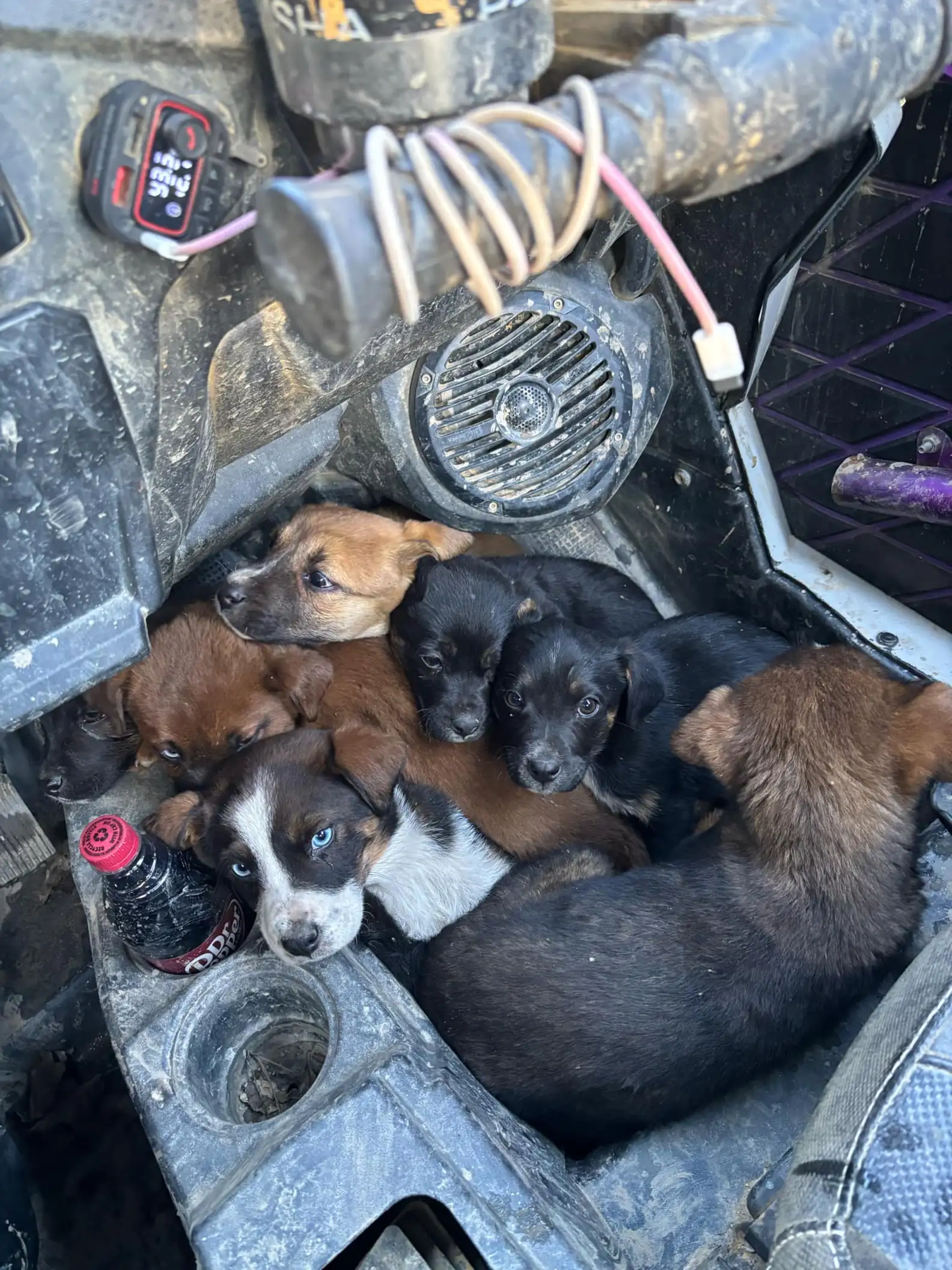 After the initial excitement of seeing their rescuers wore off, the puppies were a little shy, and the couple worked to gain their trust before they were able to get them all safely onto the floor of the ATV. After that, it was surprisingly smooth sailing all the way home.